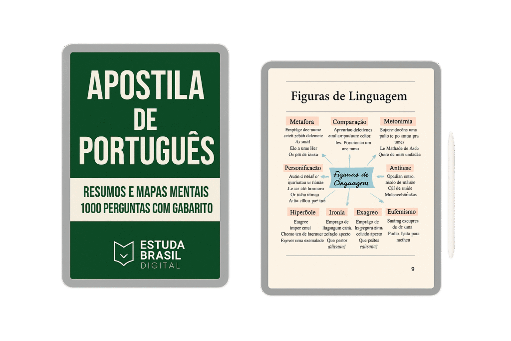 Você irá aprender português com resumos visuais, mapas mentais e exemplos práticos que facilitam a memorização.